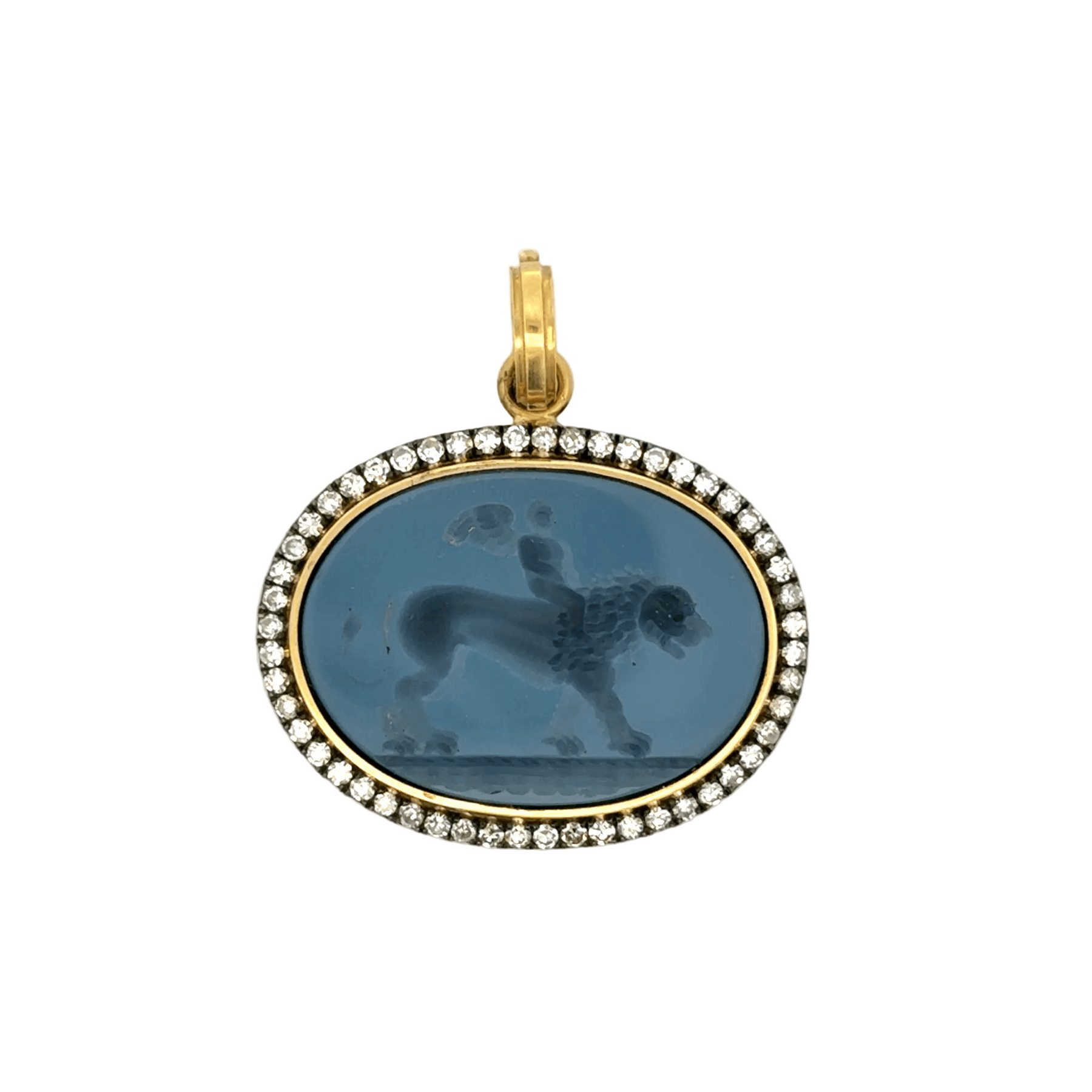 This distinguished pendant showcases the artistry of Sylva & Cie, combining 18k yellow gold with blackened sterling silver for striking visual contrast. Adorned with a luminous 1.00 carat single cut diamond border, the piece is a testament to superior craftsmanship and bold design sensibility. This pendant embodies the essence of luxury jewelry for those with an eye for distinctive, high-caliber accessories.