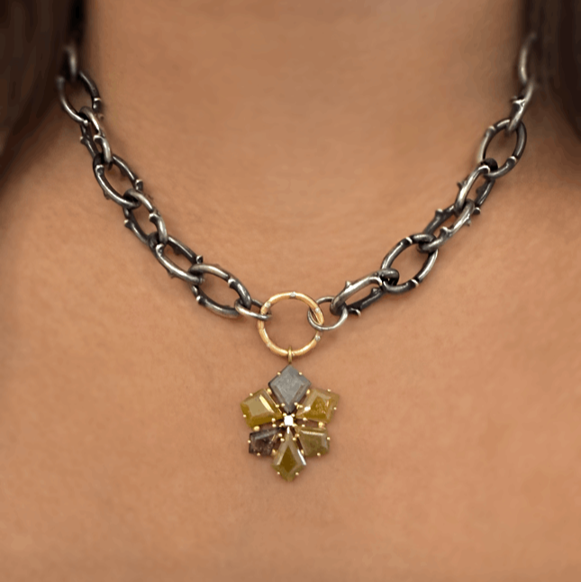 Sylva’s passion for jewelry began at an early age, drawing inspiration from the Art Deco period to create modern collections that reflect her unique artistic vision. Each piece is a limited edition, meticulously hand-wrought and hand-faceted in Los Angeles, ensuring that no two pieces are ever identical.