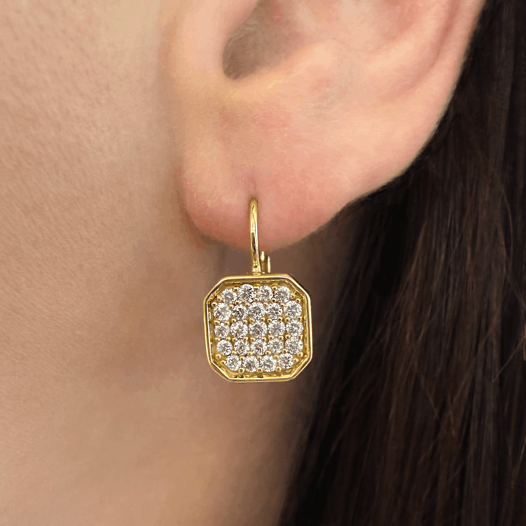 Add some sparkle to your style with these Asscher Shape Pavé Drop Earrings. Crafted with 18k yellow gold and adorned with .82 carats of diamond pavé, these earrings are the perfect statement piece for any occasion. Designed by the renowned Penny Preville, they are a must-have for any jewelry lover!
