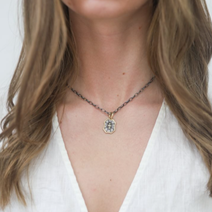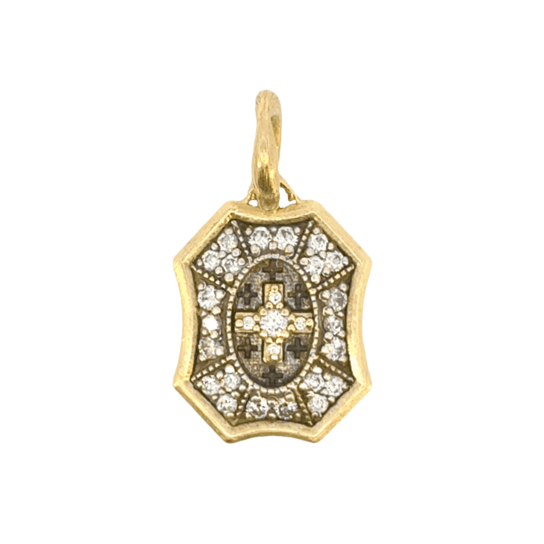 Add some sparkle and sentiment to your jewelry collection with the Baby Cross Shield Charm by designer Erica Molinari. This charm features .44 carats of diamonds, set in a unique combination of 18k yellow gold and sterling silver. And with the sweet phrase "Do Not Forget Me" engraved on the back, it serves as a lovely reminder to cherish every moment.