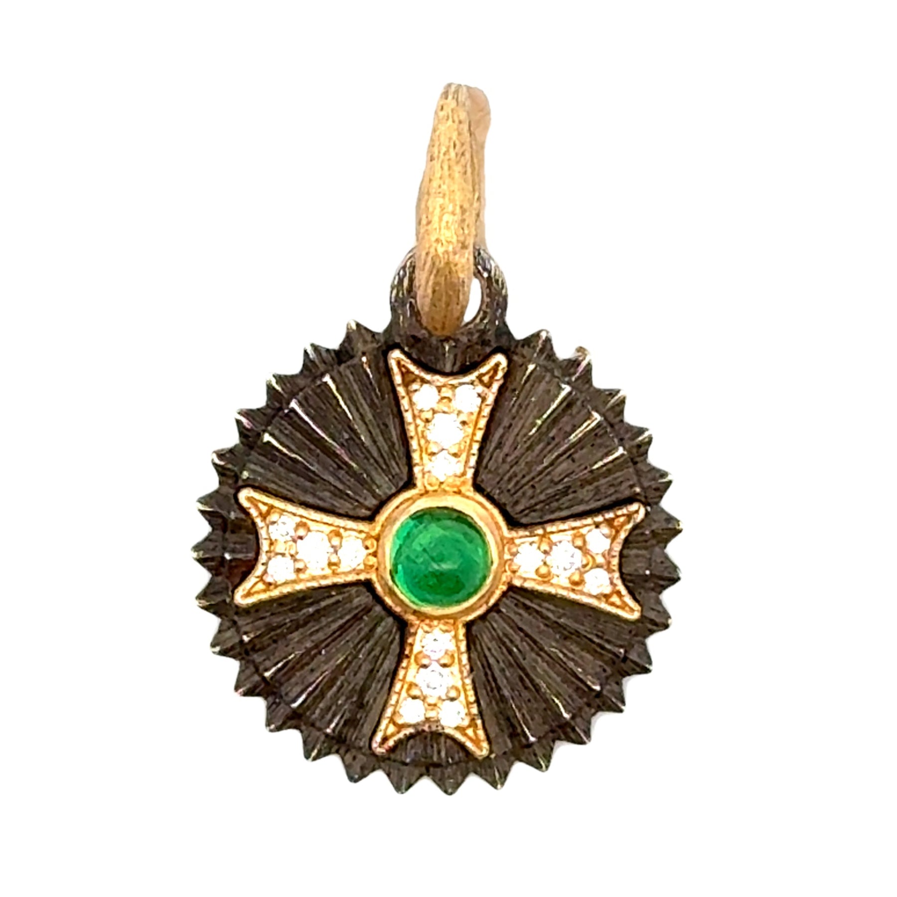 Add some regal charm to your look with the Maltese Cross Charm by designer Erica Molinari. Crafted with 18k yellow gold and sterling silver, this charm features a glistening emerald, surrounded by .3 carat diamonds and a unique crown design on the back. Perfect for any style, this charm is fit for all royalty.